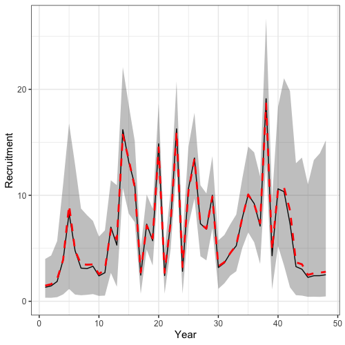 - Mean recruitment is estimated,