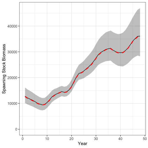 summarize(lwr = quantile(SSB, 0.025),